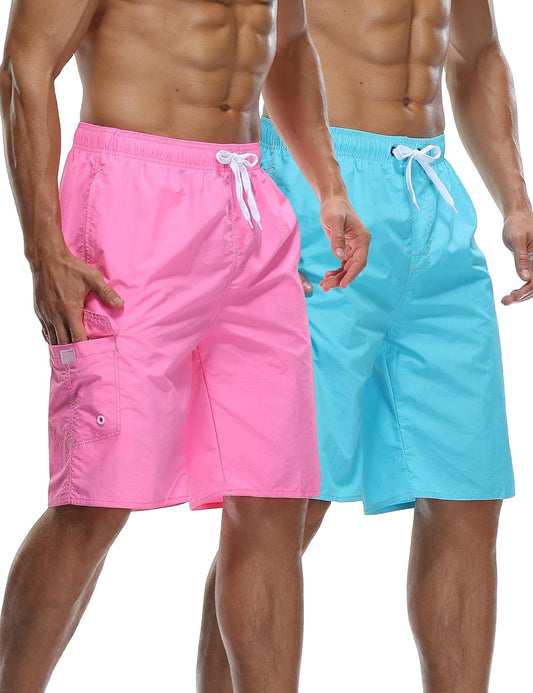Mens Quick Dry Swim Trunks Striped Print Board Shorts with Mesh Lining